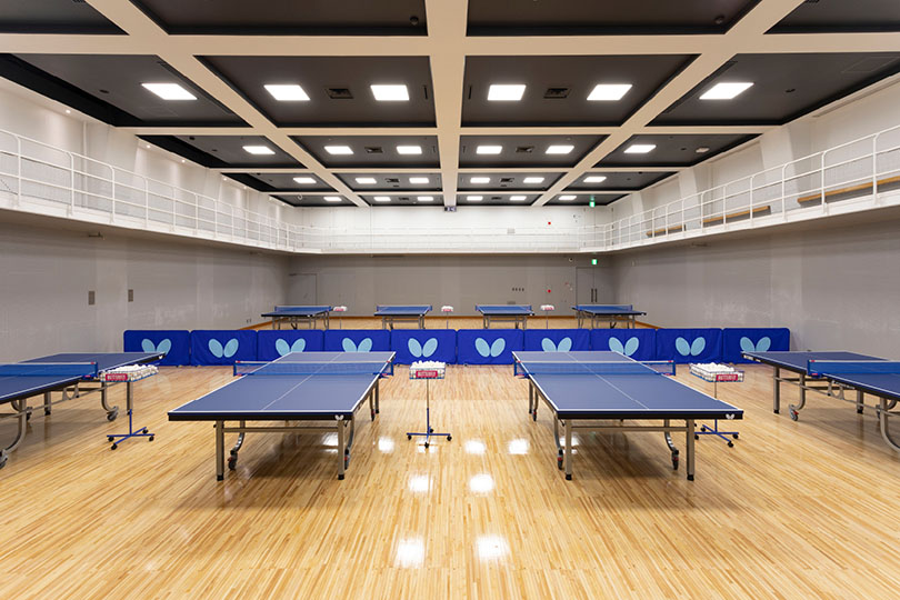 用具販売で得られた利益を卓球界に還元したいという思いから、若い選手の修練の場として設立された、宿泊施設を備えた卓球場。これまで50以上の国・地域の選手が訪れ、国際交流の場としての場としても大きな役割を果たしている