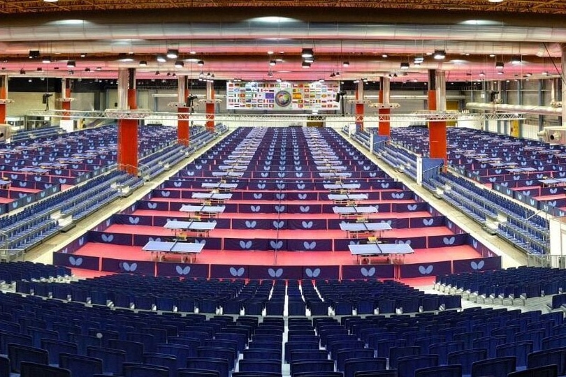 ■ TBE スペイン・アリカンテで行われた世界ベテラン卓球選手権大会で300台の卓球台協賛