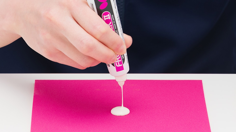 別売の接着剤『フリー・チャック2』または『フリー・チャック2−L』と、接着剤を伸ばす『クリップスポンジ2』、はさみを用意します。