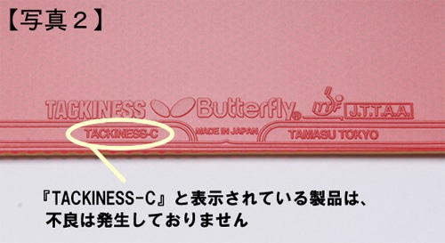 「TACKINESS-C」と表示されている製品は「タキネス・CHOP」です。不良は発生しておりません