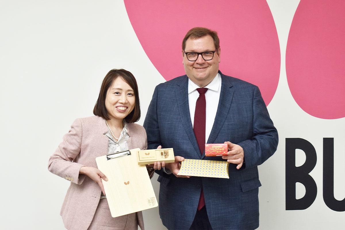 はじめに、当社代表取締役社長の大澤卓子と意見交換を行い、双方に日頃の感謝を伝えるとともに、和やかな雰囲気の中、経済、スポーツなどに関する意見交換を行うなど、今後の協力について確認いたしました。