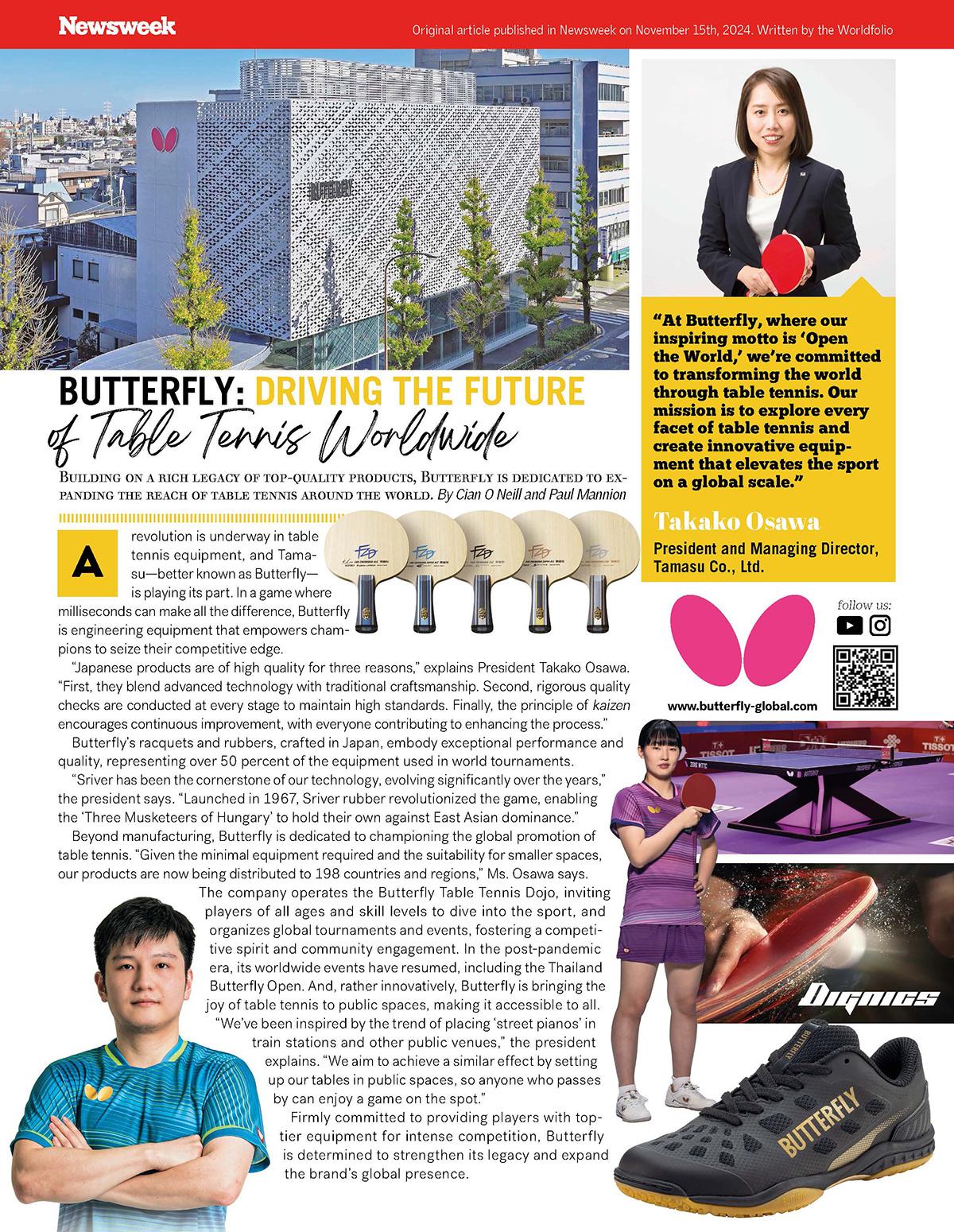 「バタフライ」ブランドを展開する株式会社タマスは、代表取締役社長大澤卓子が、米国の雑誌「Newsweek international」のインタビュー取材を受けたことをお知らせいたします。11月15日発売の同誌に、インタビュー関連記事が掲載されました。