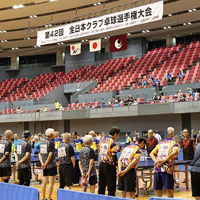 全日本クラブ卓球選手権大会は、都道府県の予選を勝ち抜いたクラブチームによって、小・中学校の部から65歳以上の部まで、団体戦の日本⼀をかけて⽩熱した試合が繰り広げられます。