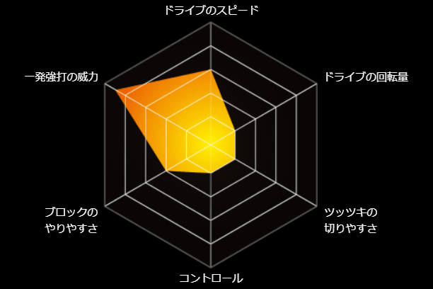 弧線を描きやすいスピードボールが打てるので、フルスイングで一発の威力を重視する選手やフォアまたはバックの攻守にスピードを求めるプレーヤーにお勧め。