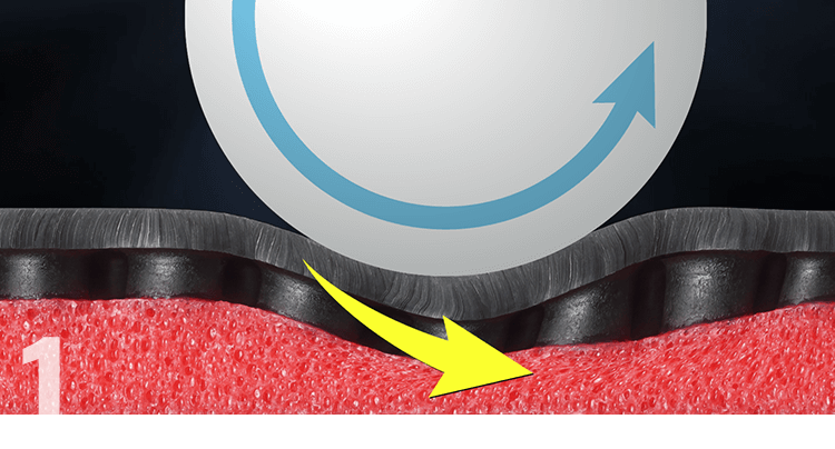 球持ちが向上したシートがボールを受け止め、変形しやすくなった「スプリング スポンジX」が大きく変形