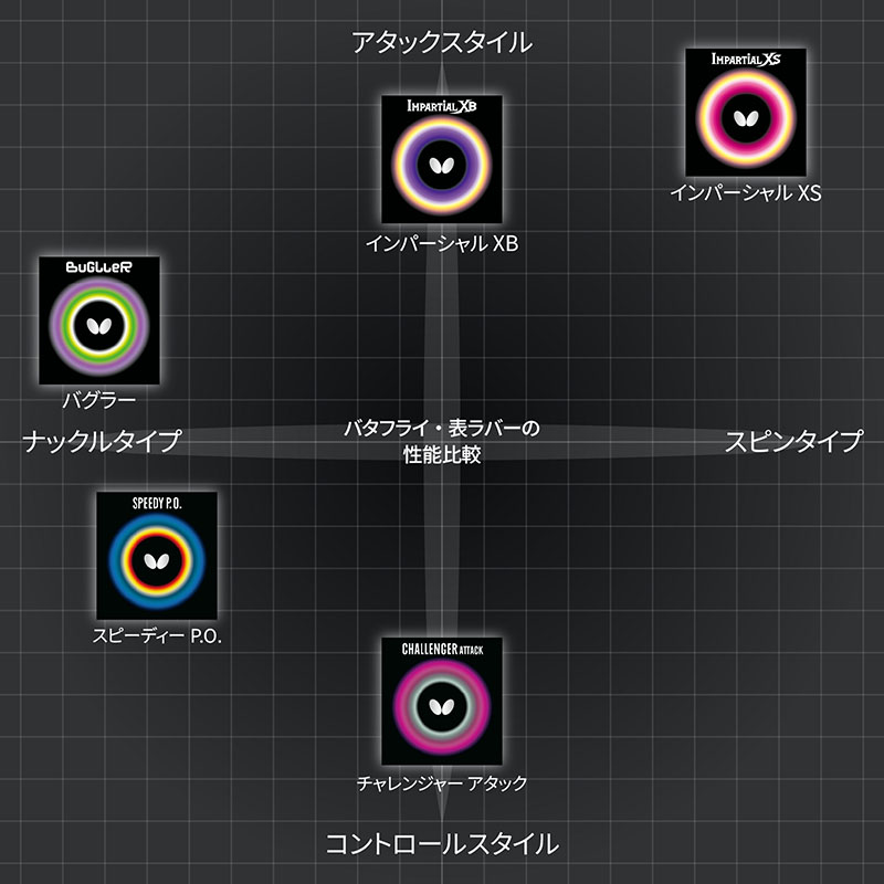 バタフライ表ラバーの特徴比較