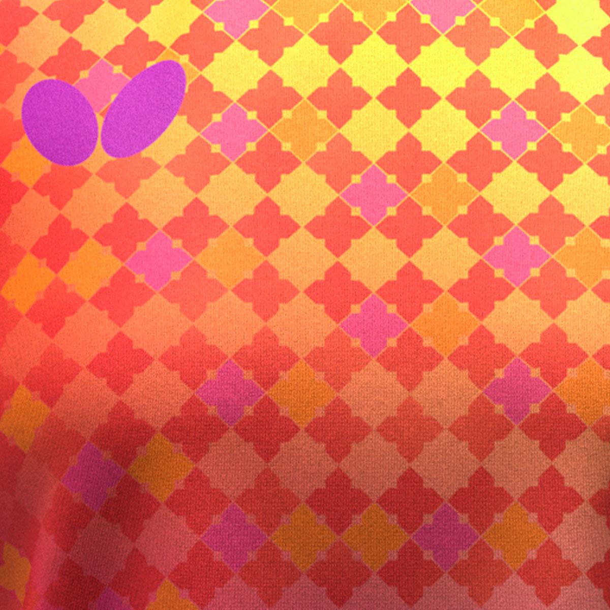 スクエア柄と多色のグラデーションの組み合わせで、華やかな雰囲気を演出。クロスするようにつくられた後ろ衿により、首元をすっきり長く見せることができます。