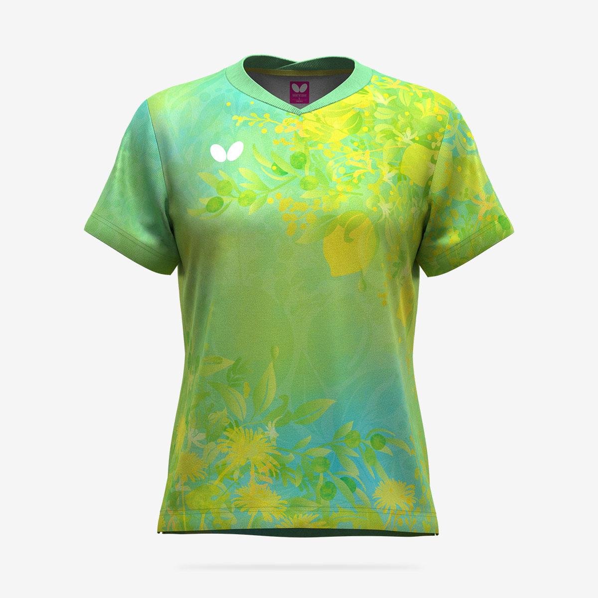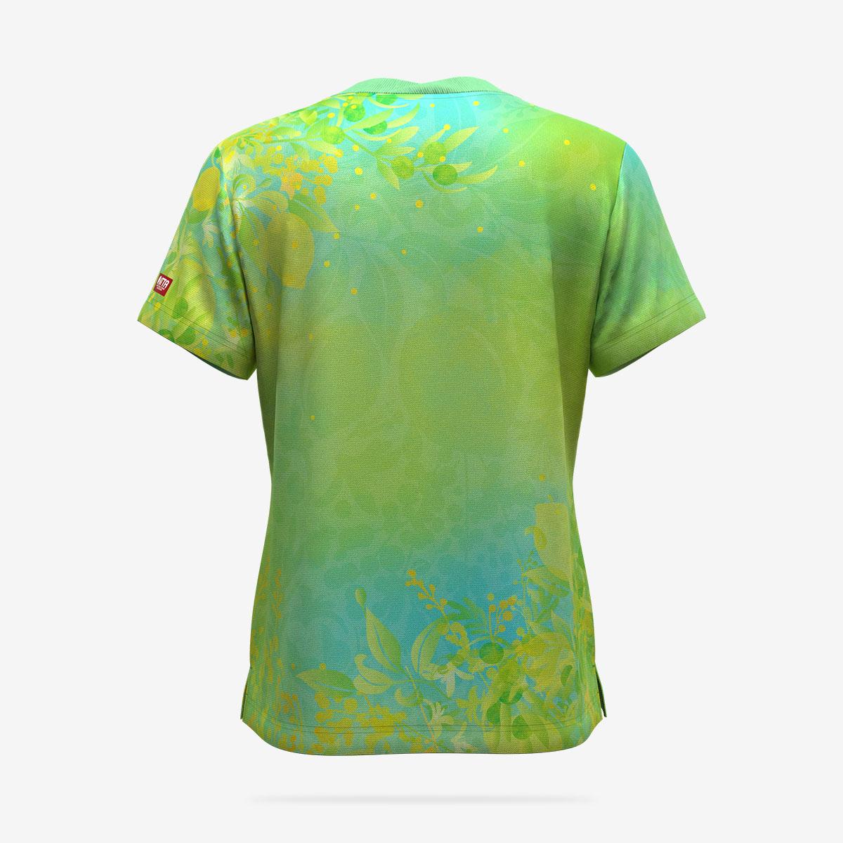 植物の柄がきめ細やかにデザインされたレディース用ゲームシャツ。カラーごとに異なる柄が描かれているのが特徴です。華やかなポジティブ・ロゼ、力みなぎるビクトリー・グリーン、爽やかなラッキー・ブルーと、それぞれの個性を際立たせます。