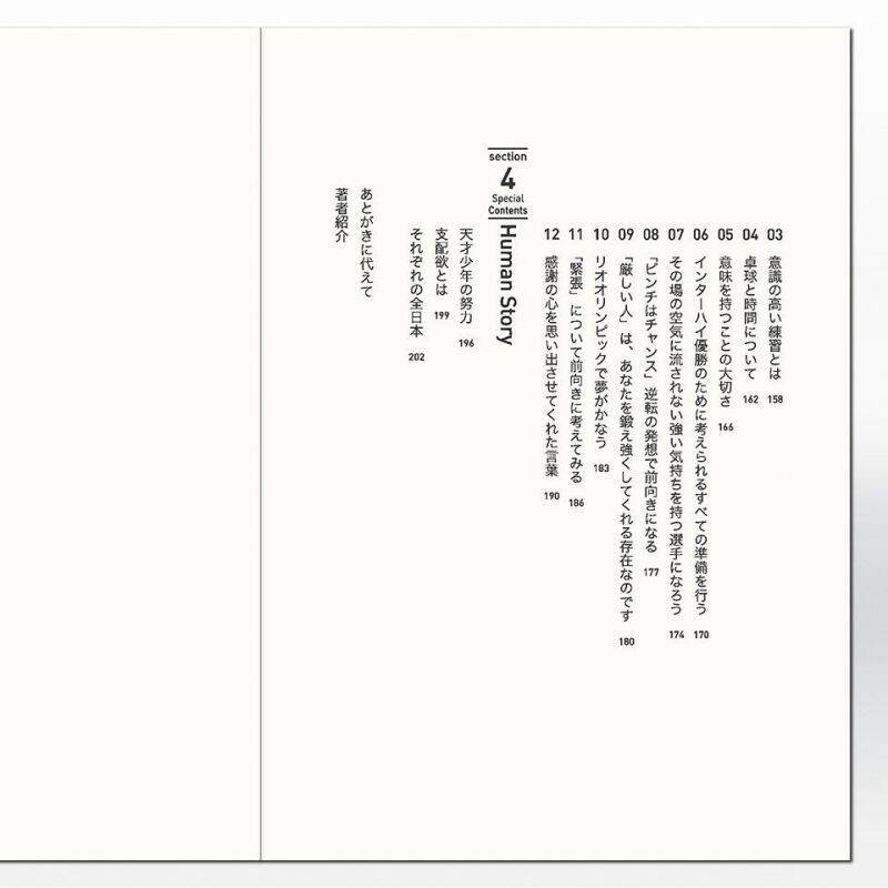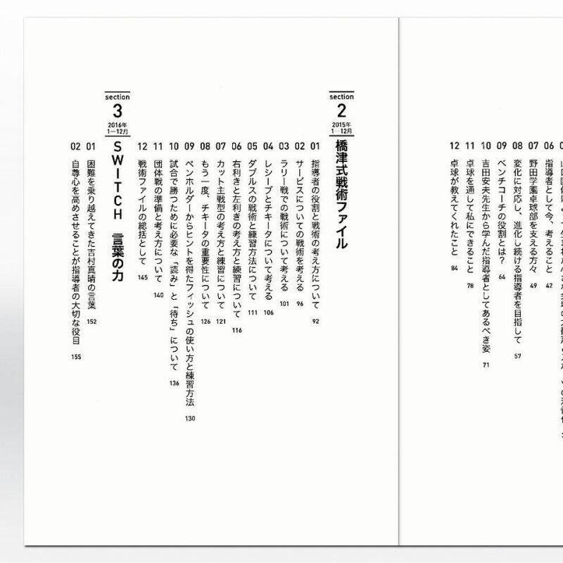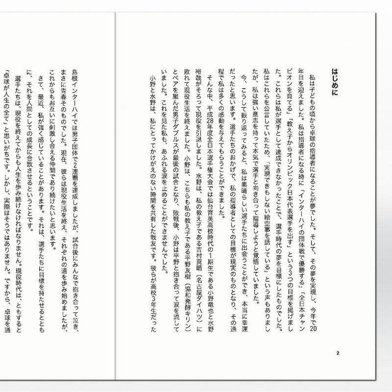 卓球レポートに連載した内容(「チームビルディング=2014年」「戦術ファイル=2015年」「SWITCH 言葉の力=2016年」)に書き下ろし原稿を加えた必読書。