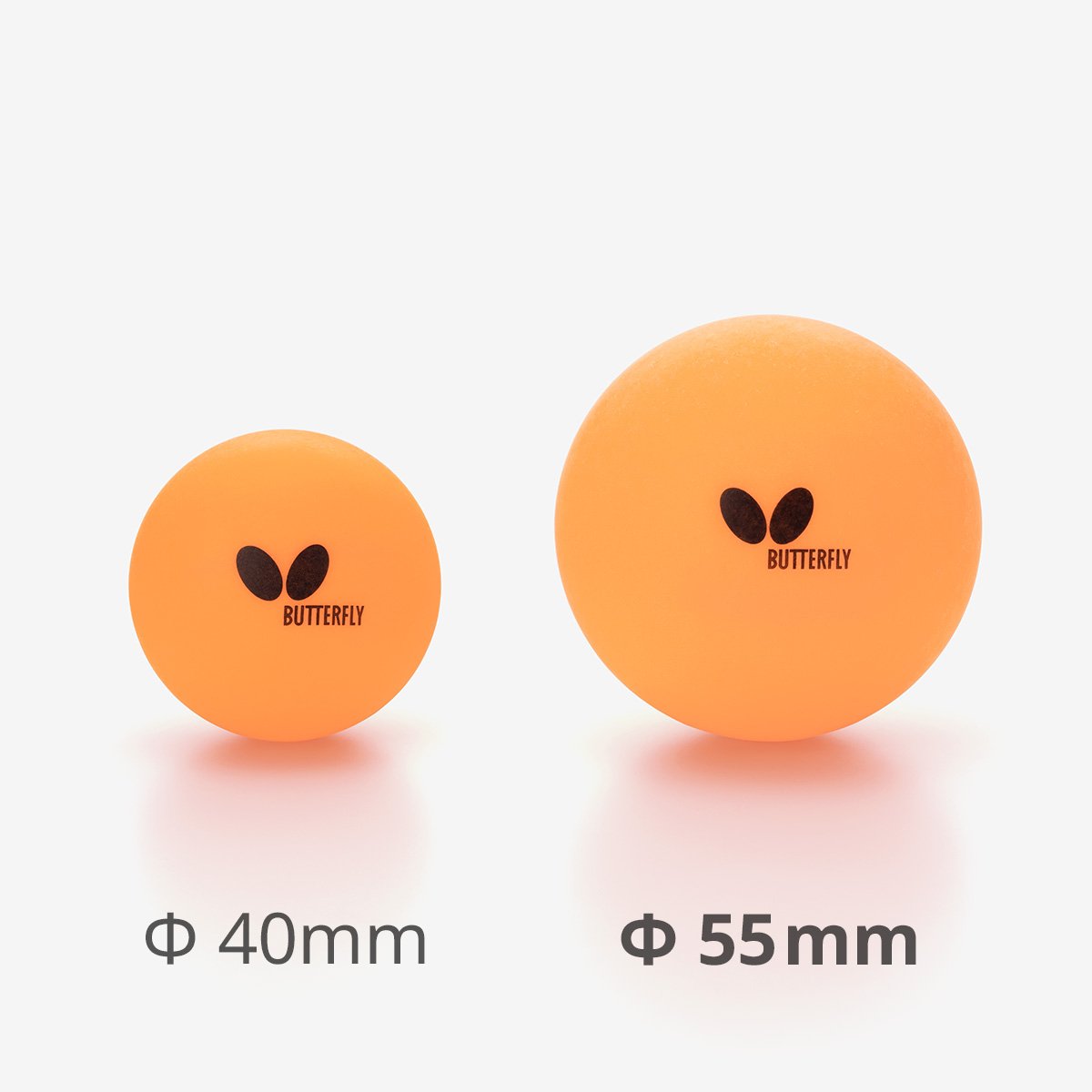 ラージボール(44mm)よりも、さらに大きい55mmサイズのホビー用ボールです。打球のスピードを抑えられるためラリーが続きやすく、幅広いレベルや年齢層に適しています。