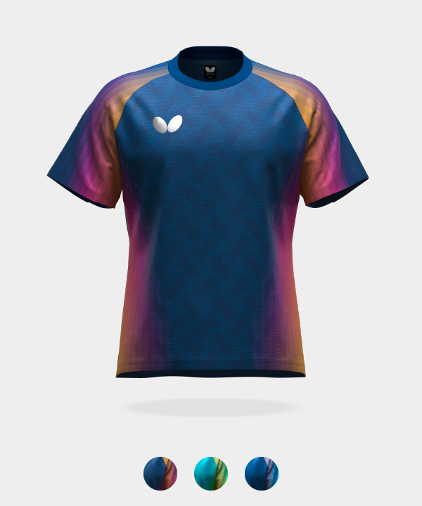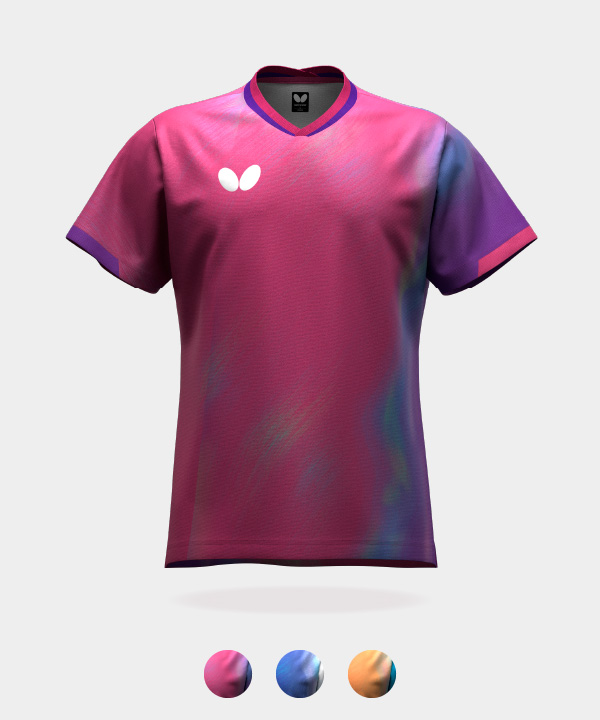 世界卓球で日本代表選手がバタフライのウエアを着用するのは、1985年にスウェーデン・イエテボリで開催された大会以来40年ぶりとなります。今シーズンは、刃文をモチーフにした日本製ゲームシャツ・パンツ、オーソドックスな日本製トレーニングウエアなどが日本代表のオフィシャルウエアとなっています。他にタオルやリュックなどもバタフライの製品を提供しており、これら日本代表と同じ仕様※のアイテムは市販されています。