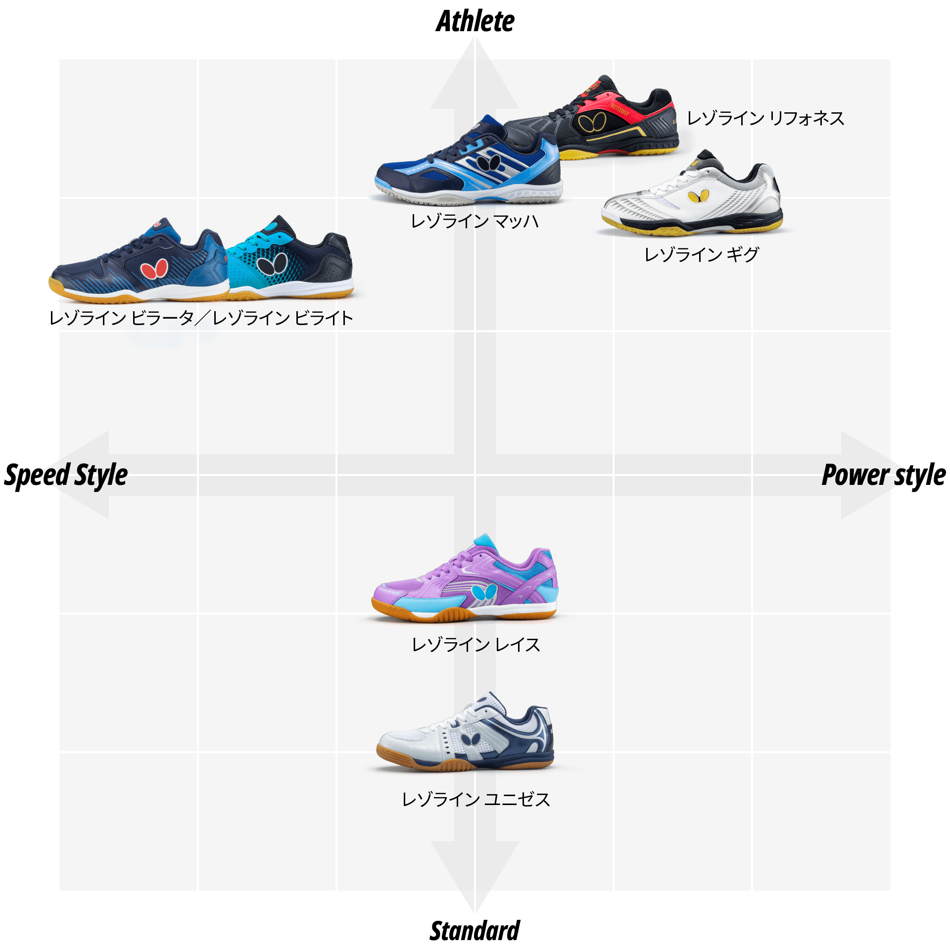 ウィングリップ:卓球に適した高いグリップ力を発揮するゴムを採用。前後左右への正確な動きをサポートします。[レバリス、リフォネス、マッハ、ギグ]