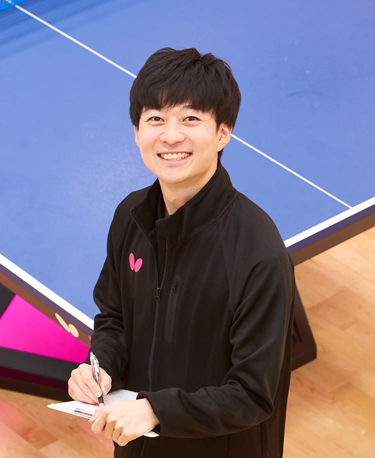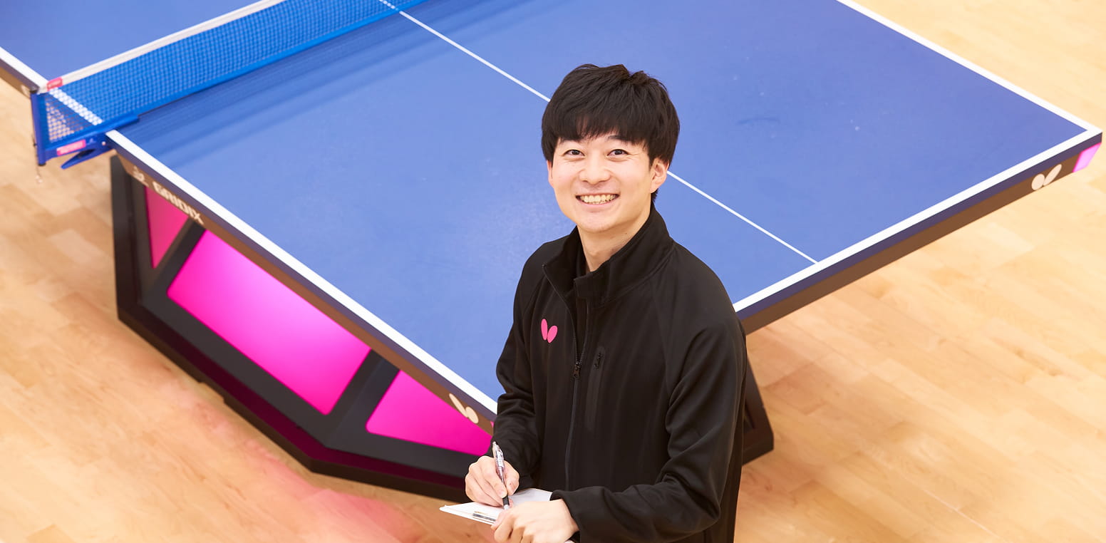 小学5年生から卓球を始め、今でも卓球を続けるほど大好きです。大学院ではスポーツ脳情報科学を専攻し、卓球プレー中の脳のメカニズムについて研究していました。研究職として大手スポーツメーカーやIT企業など、さまざまな業種の選考を受ける中で、心の底から興味を持ち、情熱を注げる分野はやはり卓球だと実感しました。