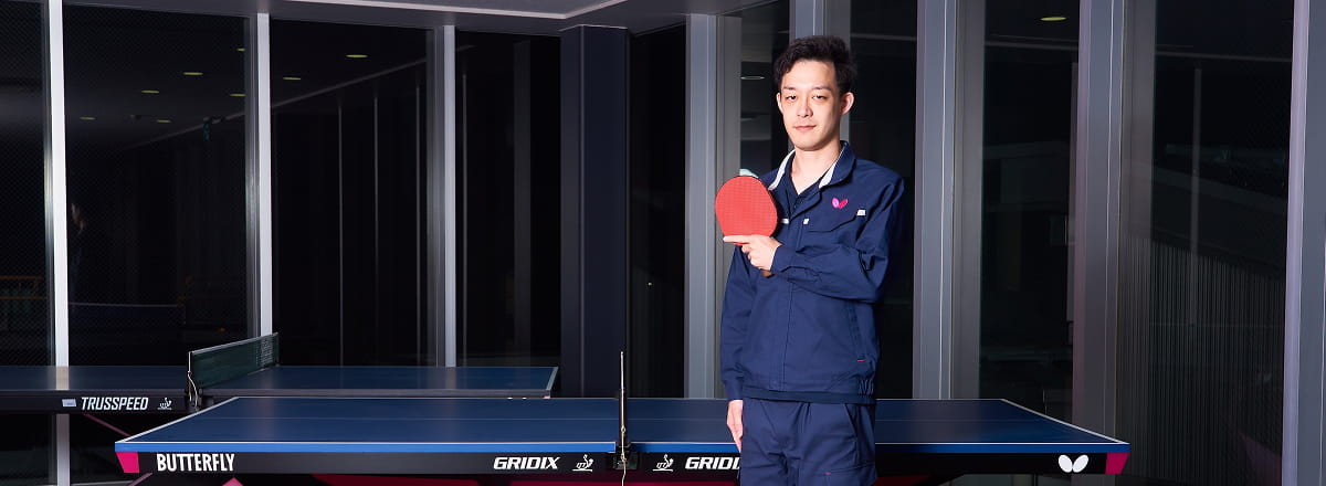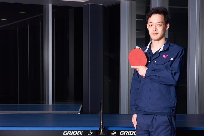 中学時代に卓球用具の重要性を実感し、ものづくりへの興味が高まった。「このラバーをつくる仕事がしたい」と大学院へ進学し、タマスへ入社。憧れの世界に入り、どのような心境の変化があったのか聞いた。