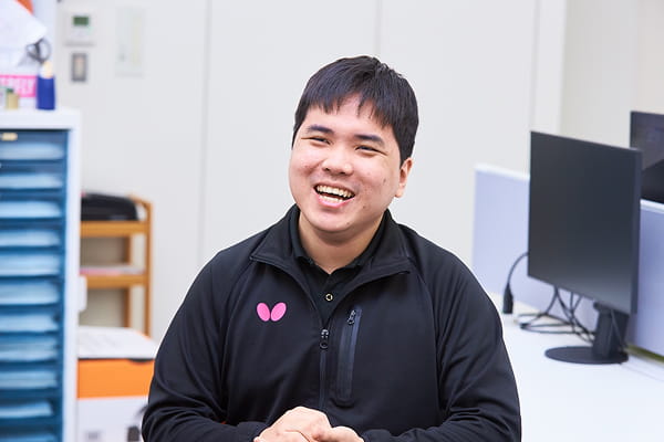 卓球初心者で入社しましたが、これまでに多くの知識と経験を積むことができました。ただ、まだまだ足りないと感じています。さらに学びを深め、自分のできることを増やしていきたいです。