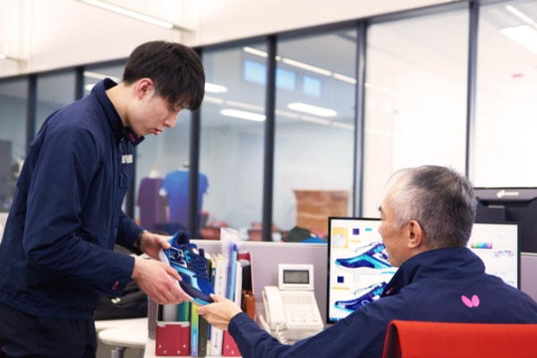 現在の部署では、ウエア・シューズ・バックなどのデザインや仕様の評価を行う業務があるのですが、異動直後はかなり苦戦しましたね。入社するまでバタフライは憧れのブランドで、「バタフライの名前がついているものなら、よいものに違いない」と思って使っていたので、いざ評価をしようとしてもどこにダメ出しをしたらいいか分からない状態だったんです。そこで、選手時代と違って新たに生み出す側としての視点が必要なんだと気づきました。