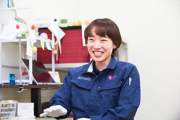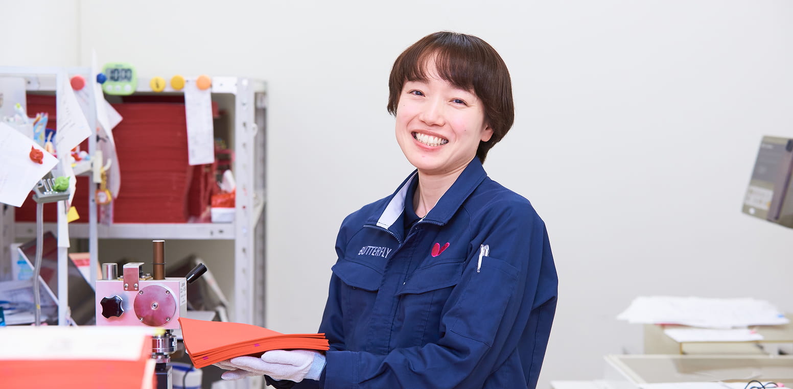 これからも、卓球に打ち込んでいる子どもたちや、これから卓球を始める人たち、そしてトップ選手まで、バタフライ製品を使ってくださる多くの方に「もっと卓球がしたい」と思っていただけるよう、ものづくりの現場から支えていきたいです。