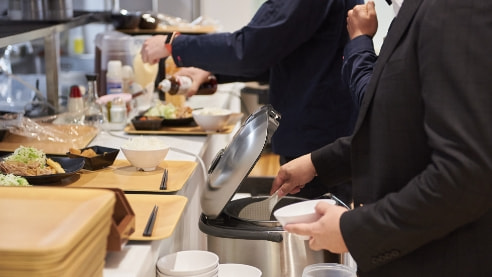 本社とバタフライ・テックには社員食堂を設置しており、日替わりの定食を提供しています。