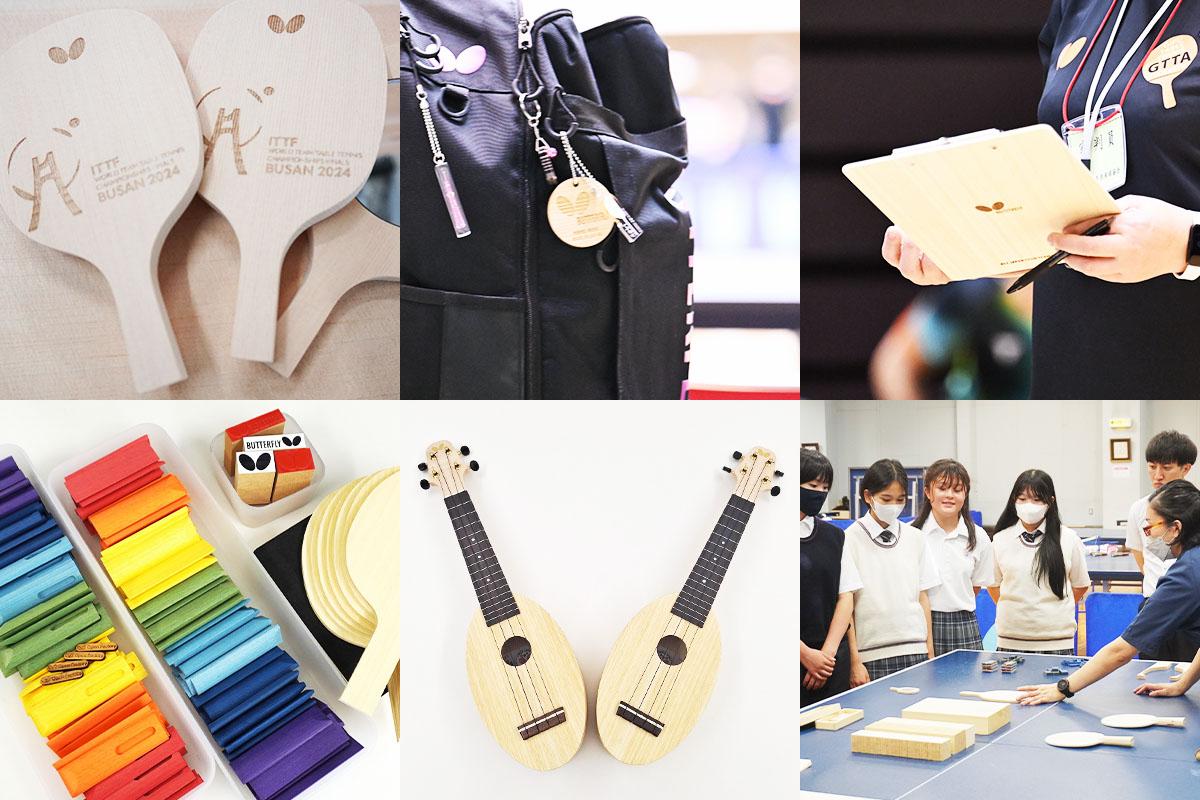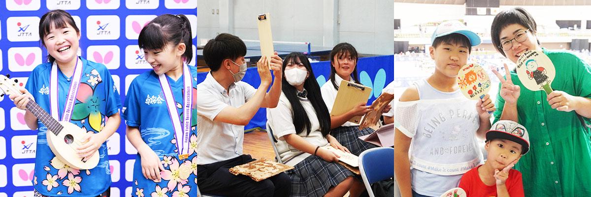 また、バタフライならではの方法として、ミニ卓球ラケットのクラフトセットに活用しました。競技用ラケットより一回り小さいブレードやグリップ、グリップにはめ込むプレートを用意し、参加者にクラフト体験をしてもらうイベントを国内外の大会会場やイベント会場で複数回実施しました。ブレード表面に絵を描いたりスタンプを押したりして自由にデザインしてもらい、思い出にも残るグッズです。