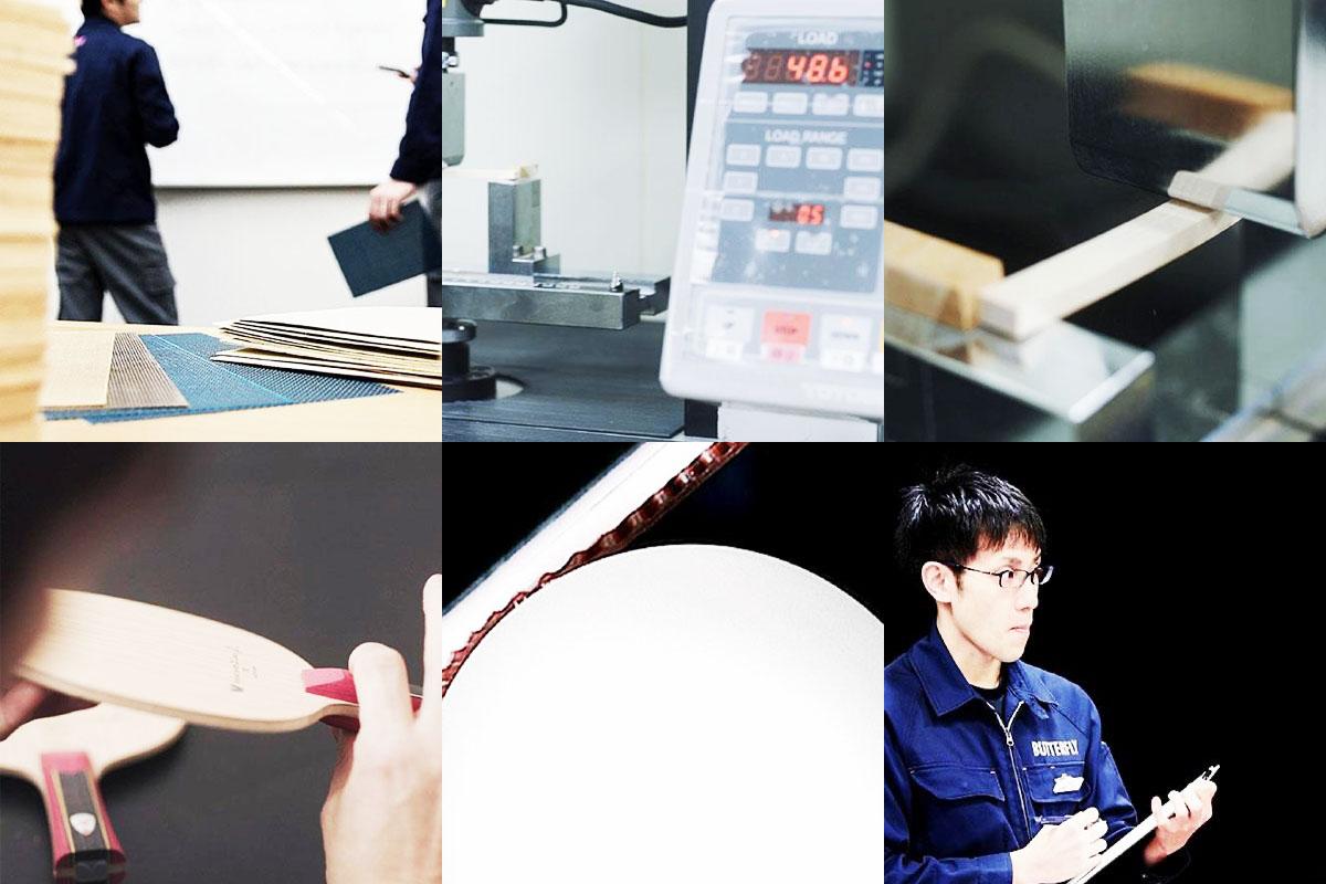 バタフライ製品をお手にとる方々の中には、これらの木材の使用が製品の性能に影響するのでは、とお考えの方もいらっしゃるかもしれません。バタフライもその点には十分気を配り、研究開発部門で性能の調査を行ってまいりました。木材の模様はラケットの性能に一切影響しませんので、ご安心ください。
