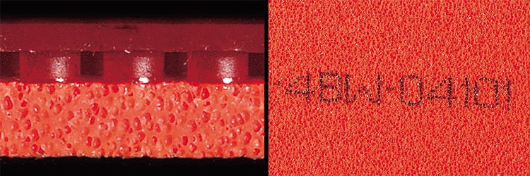ラバーのスポンジは白色やだいだい色、クリーム色が主流の時代に、驚きの「赤」。そして、肉眼でも分かるほど大きなスポンジの気泡。実際に打ってみると驚くほど弾み、なおかつ粘着性ラバーかと思うほど回転がかかる。それは未体験の性能だった。