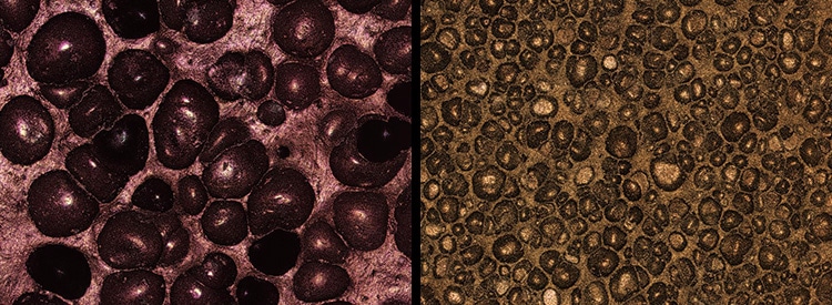 顕微鏡で見た「スプリング スポンジ」の気泡(左写真)と、従来のスポンジの気泡(右写真/ともに200倍に拡大)。この気泡の大きさが「スプリング スポンジ」の特徴だ