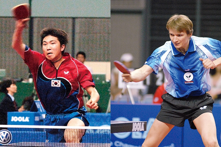 ノングルーへの移行がアナウンスされた04年当時、バタフライの契約選手だったふたりのトップ選手、韓国の柳承敏(左写真)とオーストリアのシュラガー(右写真)