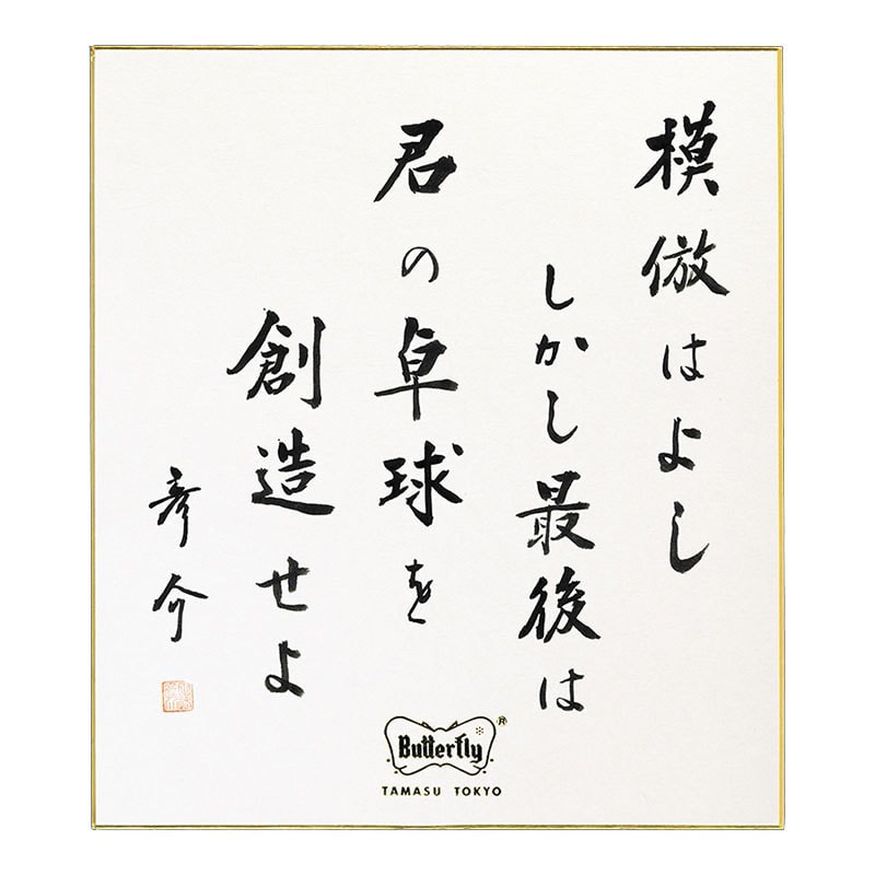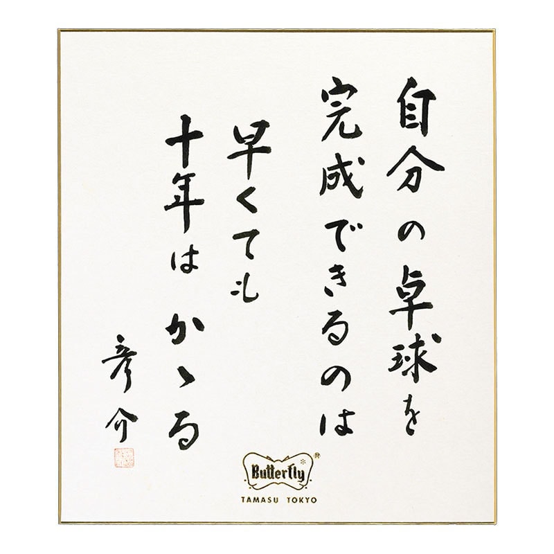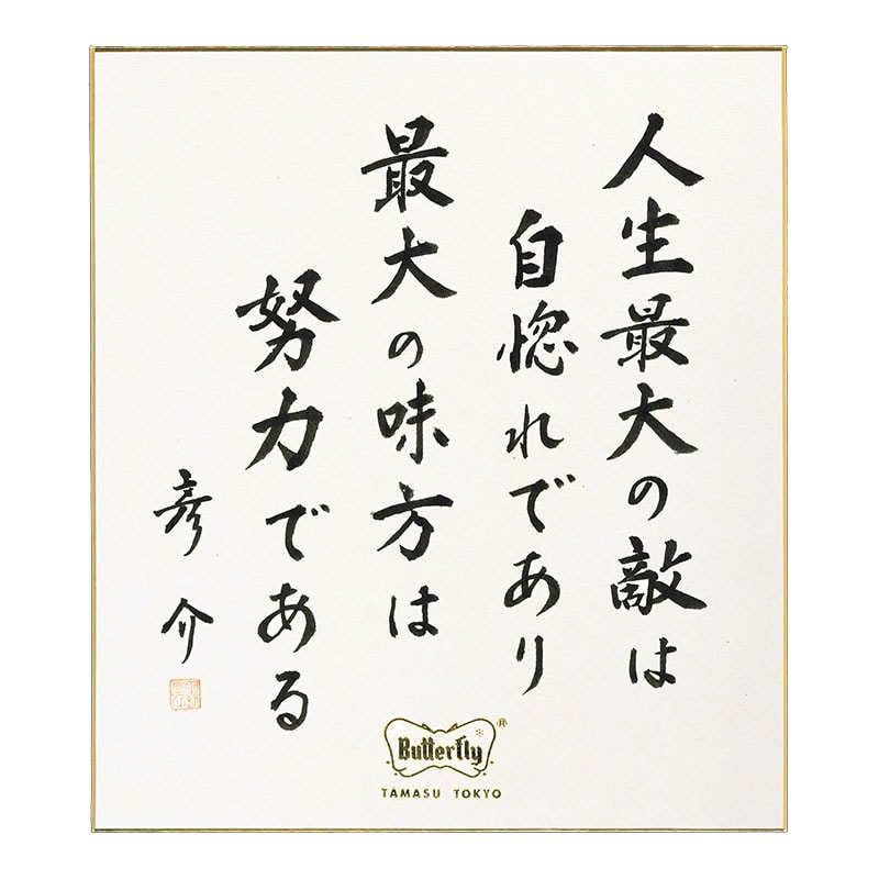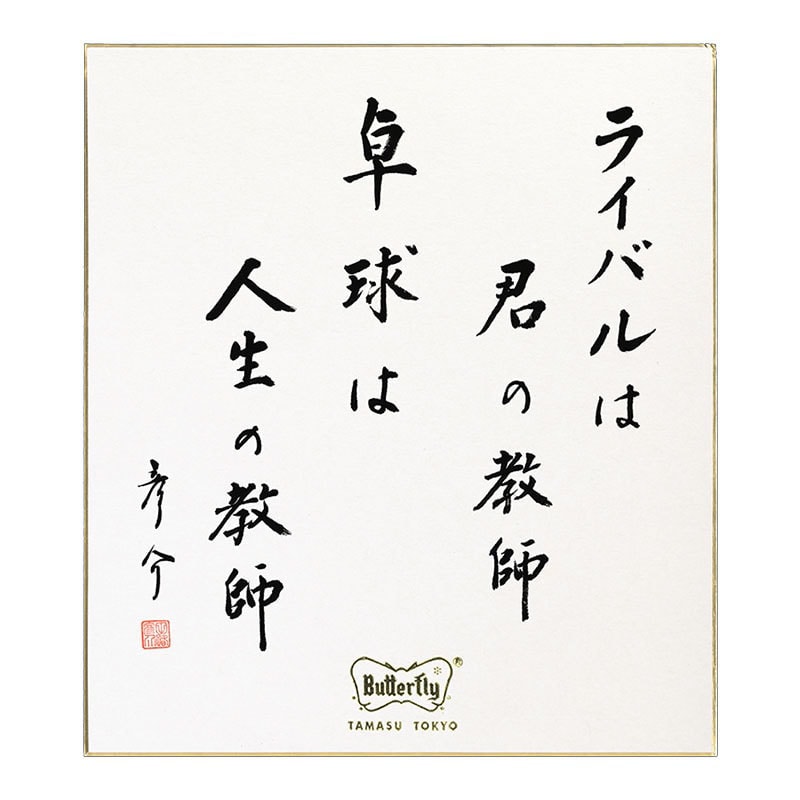 田舛彦介はその生涯を通じ、多くの言葉を残している。バタフライ卓球道場の入り口に掲げられた「努力」の揮毫をはじめ、その力強い言葉の数々は今もなおタマスと多くの卓球人の中に息づいている。