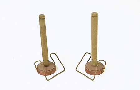 木製の支柱に、テーブルに取り付けるための金属製のフックが取り付けられている。このフックは可動式で、収納時は場所を取らないように折りたたむことができる。