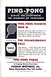 裏表紙に掲載されている卓球用具の広告。カラー印刷を用い、見栄えのよいつくりになっている。掲載されている広告内容では、ラケットの価格は1ドル、ボールは1ダースで2ドルとのこと。
