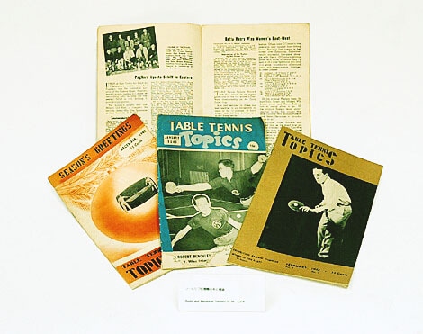 今月ご紹介するのは、1940年および1942年に発刊された"Table Tennis Topics"。見た目や総ページ数に大きな変更はないものの、少しずつ改良が加えられている。1930年代のものと比較して最も大きな違いは、サイズの変更である。これまでA5版よりもやや小さかったものが、一回り大きなサイズに変更されている。また、表紙の"Table Tennis Topics"の文字は、年を追うごとに装飾が加えられ特長のあるデザインに変化している。また、中身には写真を多く用いたり、ユニークなイラストを取り入れたりするなど、より親しみやすいものとなっている。