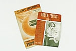 イラストの中に写真が取り入れられた1940年の"Table Tennis Topics"の表紙。1930年代のもの(右側)と比べると、より工夫が加えられ見栄えが良くなっている。また、以前のものと比較すると、サイズも一回り大きくなっているのがわかる。