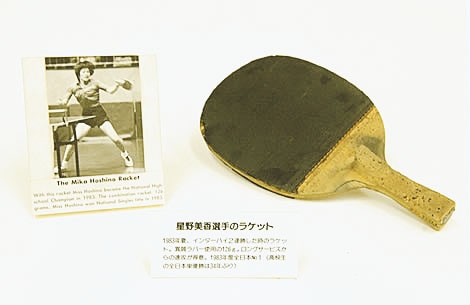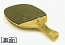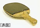 昭和58年の夏、インターハイで2連覇を達成したときのラケット。日本製反転用ペンホルダー5枚合板。ラバーを貼ったときの重量は126g。反転式としては、やや軽いラケットを使用していた。