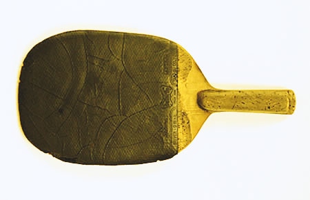 裏ソフトラバーを使用。スポンジは厚めのものを使用した。現存のものは劣化が著しくゴムが完全に硬化してしまい、表面にはひび割れが生じている。
