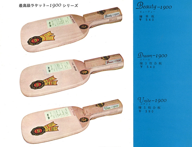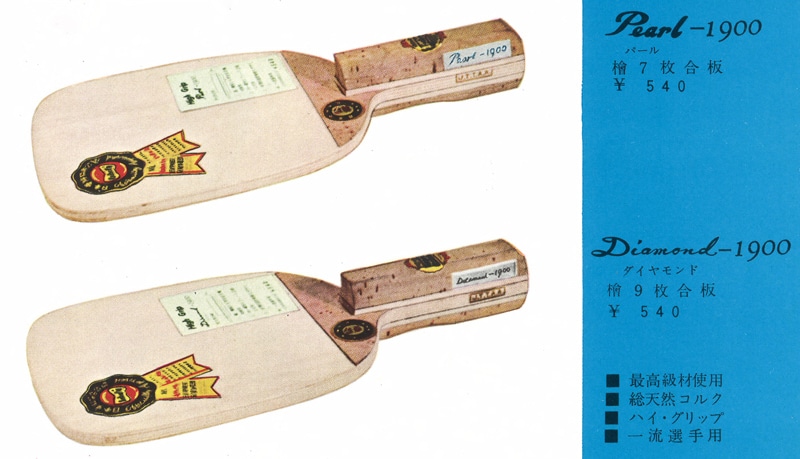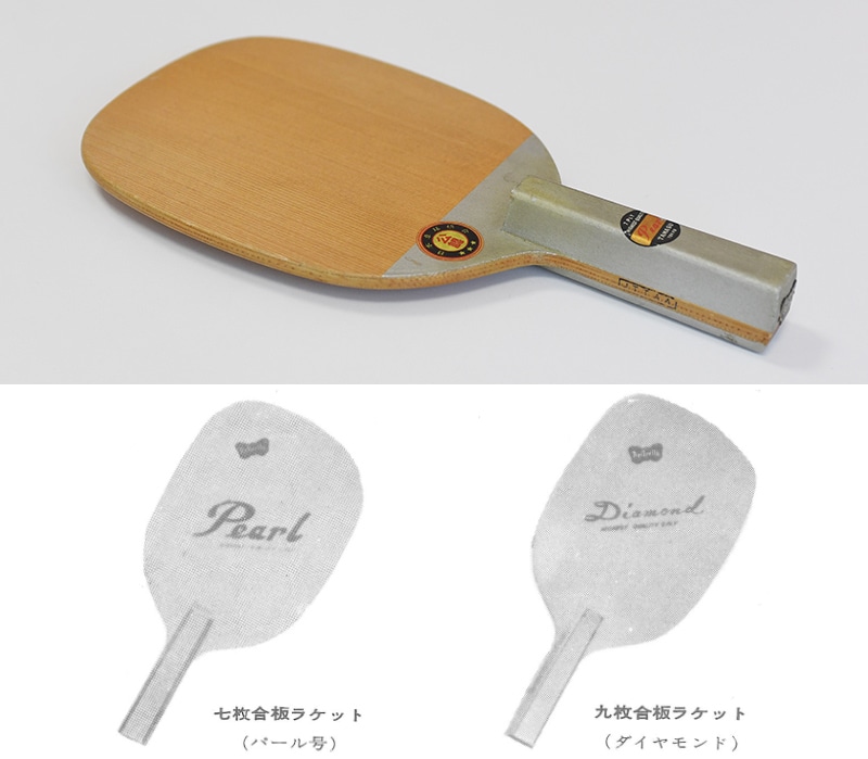 7枚合板のパール号、9枚合板のダイヤモンド号を発売。どちらも最高級檜材のみを使い、美しいラッカー仕上げと総天然コルク仕上げの2種類があった。また、最高級檜材3枚合板のラケット(総天然コルク仕上げ)も発売した。 -