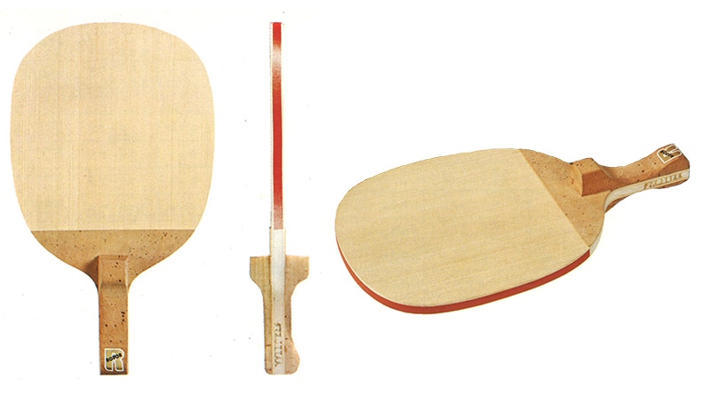ペンラケットの両面に異種のラバーを貼った戦型が新しい波を起こしつつあった当時、この戦型を目指す選手たちの要望に応えて、反転しやすいグリップ形状を採用した3枚合板のラケットを製作した。
