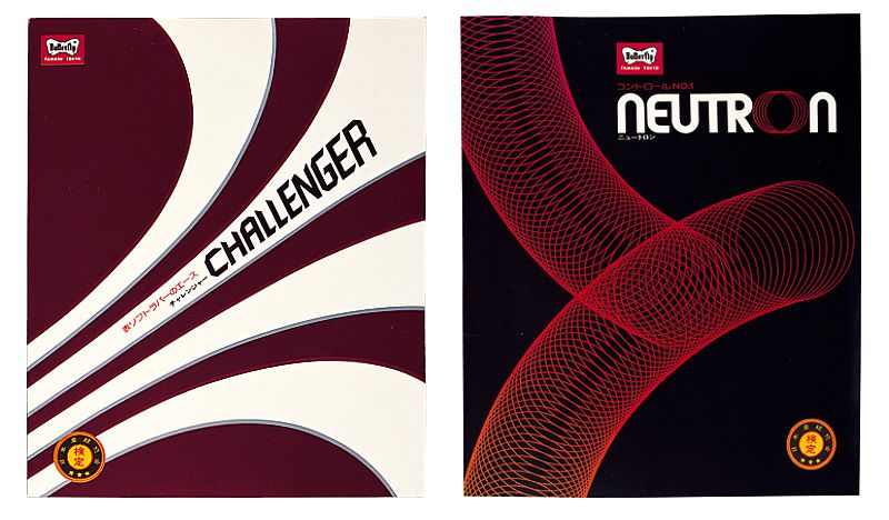 チャレンジャーはコントロール性を追求した表ソフトラバー。ニュートロンは「ビギナーからハイクラスまで」というキャッチフレーズの裏ソフトラバー。 -