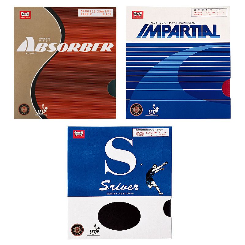 アブソーバは攻撃選手用アンチラバー。インパーシャルは表ソフトラバーで、20年を超えるロングセラーとなった。また、この年にはスレイバーに黒色を追加発売した。 -