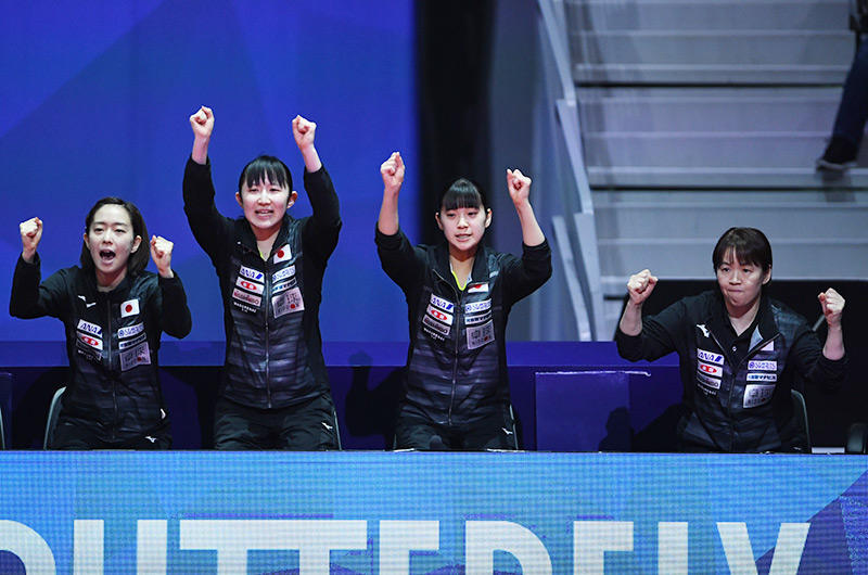 今大会の日本女子は、石川佳純(全農)、伊藤美誠(スターツSC)、平野美宇(日本生命)の3人がメインで出場し、早田ひな(日本生命)と長﨑美柚(JOCエリートアカデミー/大原学園)が控えというオーダーでした。早田、長﨑が縁の下の力持ちに徹して出場選手をしっかり支え、そのサポートに石川、伊藤、平野の3人が全力で応えるという、チームジャパンとしての素晴らしい姿を見せてくれたと思います。