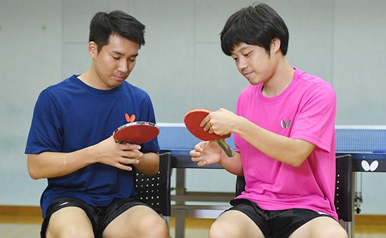 トップ選手同士がお互いのラケットを交換して試打し、打球感や打球スピード、使いやすさなど、相手のラケットを評価し合う新企画「ちょっと、それ貸して!」。第2回は青森山田中学校・高校から東京アートと長きにわたって、チームメート、そして、ライバルとしてしのぎを削ってきた高木和卓と大矢英俊(ともに東京アート)だ。