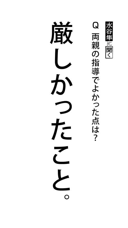 [水谷隼に聞く] 水谷隼に聞く 2 両親の指導 2018.11.27 ツイート シェア 5歳で卓球を始めた水谷隼選手は、意外にも、幼い頃は卓球が好きではなかったという。水谷選手は幼い頃を振り返って、「小さい時は卓球をしていても苦しいことの方が多かった。親に怒られないために必死でやっていました」と述べた。 取材=猪瀬健治 文=川合綾子 \この記事をシェアする/