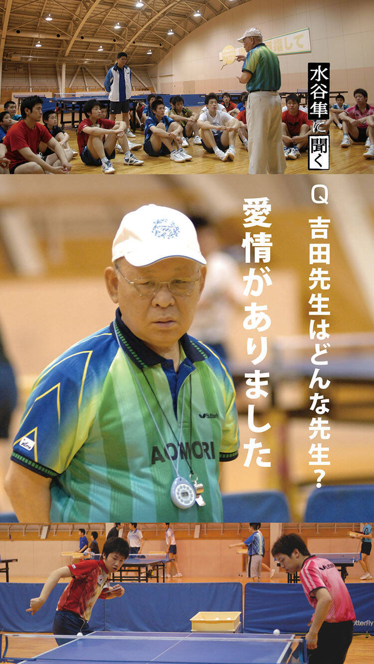 水谷選手以前の、全日本男子シングルスの最多優勝記録は8。斎藤清さんが打ち立てた記録だったが、その斎藤清さんも、吉田氏の教え子だった。
