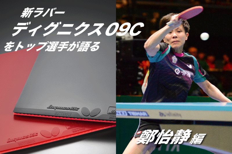 2020年4月1日に発売の『ディグニクス09C』。ハイテンションラバーの弾みを持つ粘着性ラバーとして、多くのユーザーの注目を浴びているこのラバーだが、既にボル(ドイツ)、オフチャロフ(ドイツ)ら一部のトップ選手が使用し、好成績を残している。