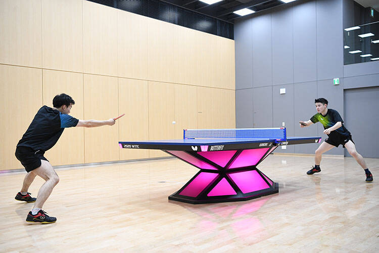 有延 あと、一番違いを感じたのがループドライブです。ループドライブは僕のラケットの方が、ひっかかりが強くてやりやすいですね。平野さんのラケットでしっかり回転をかけてミスを誘うのは難しいですね。それよりも早い打球点でスピードドライブを打った方が、平野さんのラケットのよさが出ると思います。