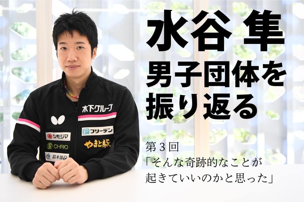 卓球レポートでは、卓球日本にとって悲願の金メダルを獲得し、一躍時の人となった水谷隼(木下グループ)にインタビューをする機会を得ることができた。ここでは、既に多くの場で語られている混合ダブルスではなく、苦心の末に水谷が自身の手で銅メダル獲得を決めた男子団体に焦点を当てて話を聞いた。水谷本人が「初めて話したことがほとんど」というエピソードの数々を味わっていただきたい。