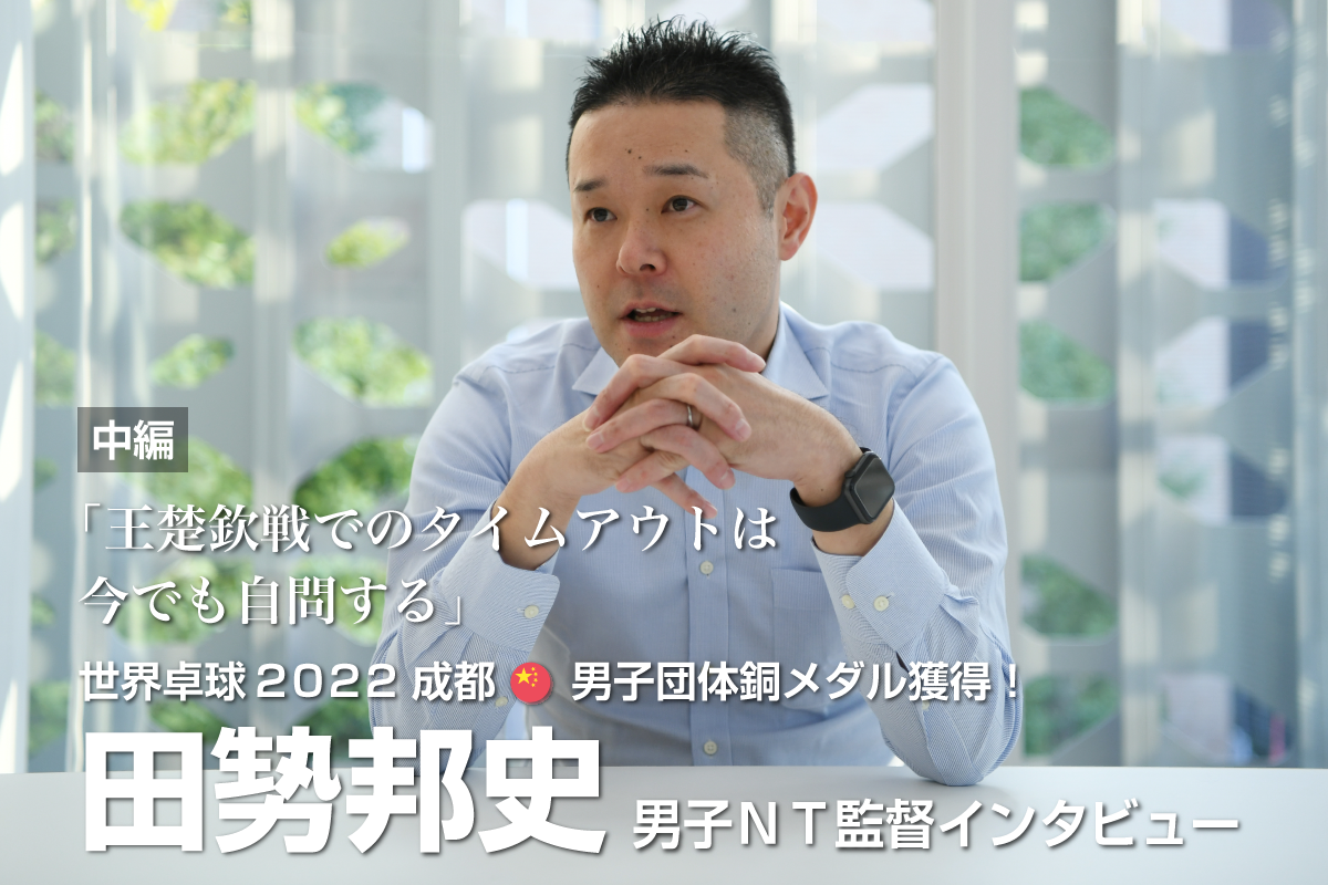 2021年の9月にナショナルチーム(NT)の男子監督に就任した田㔟邦史氏は、世界卓球団体戦の監督初陣となった世界卓球2022成都で日本男子を見事に銅メダルへと導いた。田㔟氏は監督として采配を振るう一方で、選手たちを裏でどう支え、彼らの戦いぶりをどう見たのか。
