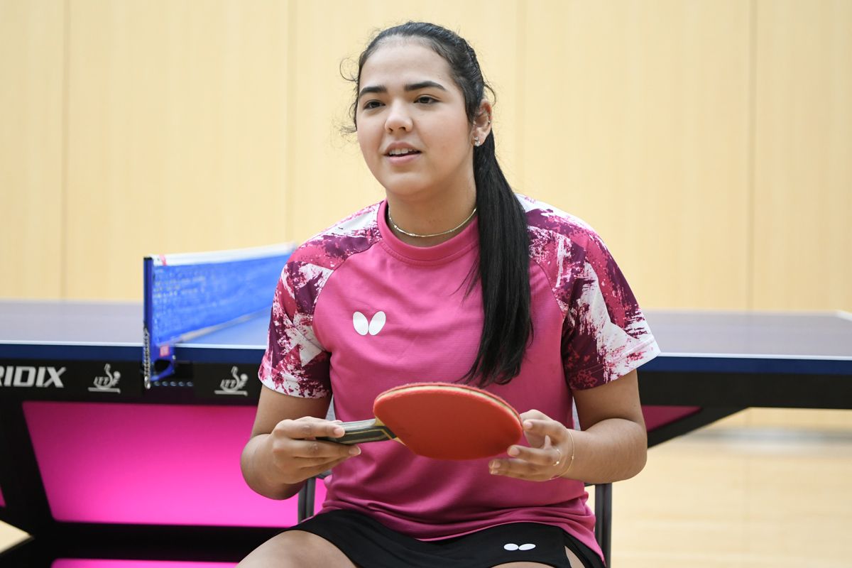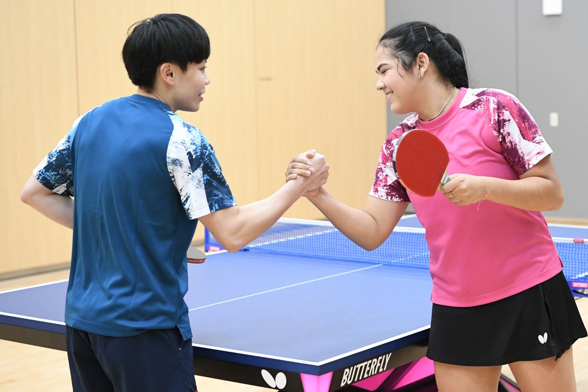 私の持ち味は、回転量と爆発力だと思います。ディアス選手はボールをたたいたり、速いスピードで返球するタイプの選手なので、軟らかめのラバーが好みのようですが、私は回転を重視しているので、プレースタイルに合った硬めのラバーを使っています。