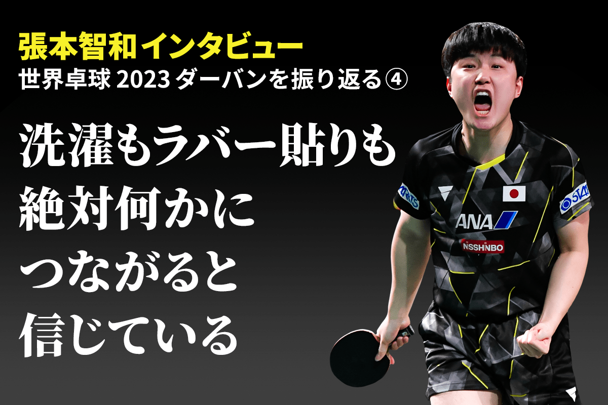 このインタビューでは、世界卓球2023ダーバンにどう臨み、どのように戦い、その結果をどのように受け入れ、そして、今何を思うのか。張本智和(智和企画)の今に迫る。