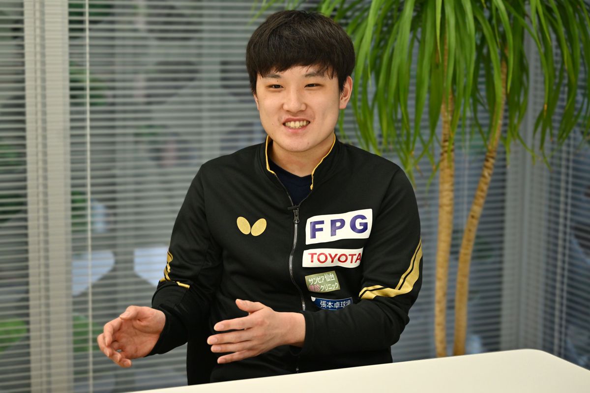 中国を見ても、張継科、馬龍、樊振東、王楚欽がいて、今は馬龍、樊振東の時代から樊振東、王楚欽の時代になって、中国にしてみれば、王楚欽、林詩棟の時代につなげたいところだと思いますが、そこで自分が邪魔する、台頭するイメージですね。自分は林詩棟よりも何年も早く活躍していますし、王楚欽は僕より先に出てきていますが、その次は絶対に僕だと思っています。そこが目標ですね。