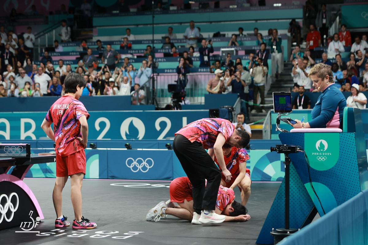 結果は最悪の朝から始まり、いや、昼まで寝てましたね。オリンピックの準決勝で負けたというのがどういうことなのか、その日はまだわからなかったです。自分がしでかしたことの大きさが理解できませんでした。世界卓球やWTTなら「優勝を逃した」「メダルを逃した」と実感できますが、舞台が大きすぎて、自分がやったことがわからないまま「え、何が起きたの?」という感じで1日が過ぎて、気がついたらフランス戦を迎えていました。放心状態で1日半くらい過ごしていましたね。